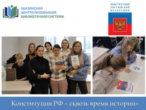 🗒13 декабря сотрудники городской библиотеки провели час правовых знаний «Конституция РФ – сквозь время истории» для студентов Черногорского горно-строительного техникума — филиала в г. Абазе.
