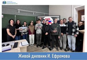 Студенты с уважением и благодарностью слушали настоящие, правдивые стихи Игоря Ефремова. Мы благодарим Наталью Николаевну Петухову, советника директора по воспитанию, волонтёра КСВО, за помощь в организации презентации книги «Донбасский синдром».