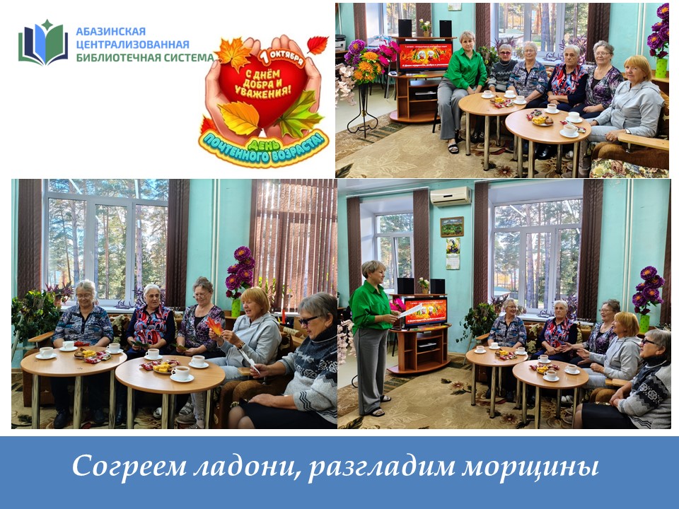 1 октября в стенах библиотеки Абазы–Заречной состоялось трогательное событие — литературная гостиная «Согреем ладони, разгладим морщины».
