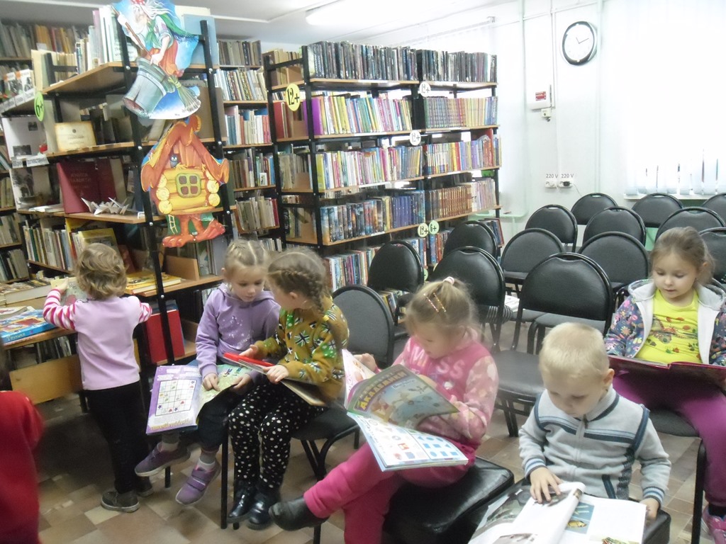 13 октября в детскую городскую библиотеку на библиотечный урок-экскурсию пришли ребята старшей группы «Радуга» МБОУ «ДРРР д/с «Дельфин».