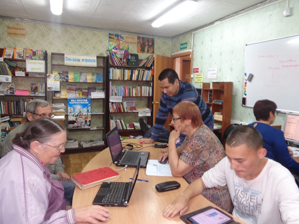 Сейчас, мы с удовольствием посещаем школу «Электронный гражданин», где изучаем основы компьютерной грамотности. По информации сотрудников городской библиотеки в данной школе в текущем году обучилось 46 человек (пенсионеры и инвалиды).